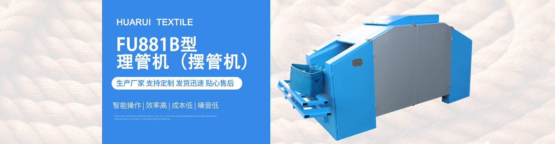 歡迎訪問天長(zhǎng)市華瑞紡織輔機(jī)有限公司網(wǎng)站,集紡織輔機(jī)及紡織安裝工具、科研、生產(chǎn)、銷售為一體的民營企業(yè)。業(yè)務(wù)熱線:13909600715